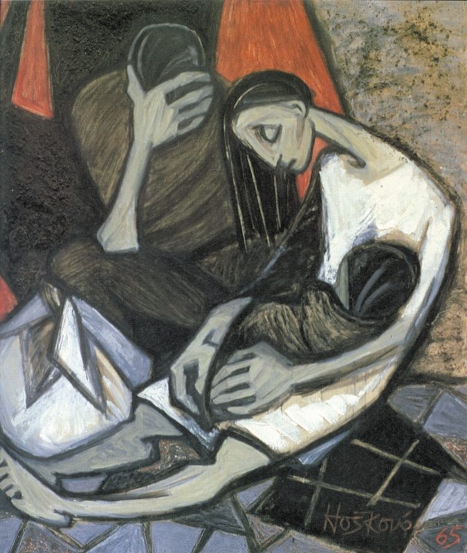 Helga Hošková-Weissová je jedním z mála terezínských dětí, které přežily válku. Teprve po válce si doplnila vzdělání, od roku 1950 studovala na Vysoké škole uměleckoprůmyslové u profesora Emila Filly a Aloise Fišárka. Počátkem 60. let se umělecky vyrovnává se zkušeností z koncentračních táborů v silném figurálním cyklu Kalvárie, po studijním pobytu v Izraeli v roce 1965 vzniká cyklus krajin a figurálních motivů - Obrázky z putování po svaté zemi a na normalizační situaci let 70., kdy nesměla vystavovat, reaguje obrazy s motivy zkázy a zmaru ze série Katastrofy. Kdy se dostala do terezínského gheta a co ji tam přivedlo ke kreslení a malování, se Helgy Hoškové- Weissové zeptal Karel Oujezdský.