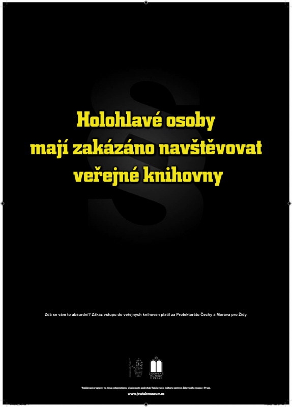 "Je to kampaň vedená prostřednictvím plakátů, tzv. citylightů. To jsou plakáty na zastávkách veřejné dopravy v Praze a jsou na nich takové parafráze protižidovských zákazů a nařízení z doby Protektorátu Čech a Moravy. Ovšem jsou aktualizované, takže si tam nepřečtete Židům vstup do knihoven zakázán, ale například Holohlavým vstup zakázán, Krátkozrakým vstup zakázán apod. Tímto způsobem se upozorňuje na zvůli nacistů za 2. světové války a na absurditu té situace. Současně se tím ta tematika zpřítomňuje. My věříme, že tato kampaň osloví především mladou generaci a že má i své zacílení. Nejde jen o tato hesla, ale je tam vždy upozornění, že jakkoliv se to zdá absurdní, tak taková nařízení platila pro Židy za 2. světové války a je tam potom odkaz na Vzdělávací a kulturní centrum Židovského muzea v Praze jako instituci, kde je možno se o tematice antisemitismu a holocaustu dozvědět více."